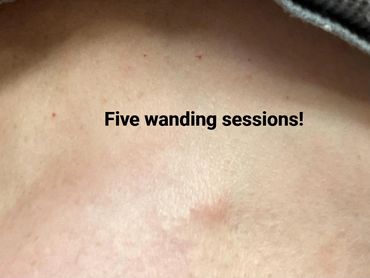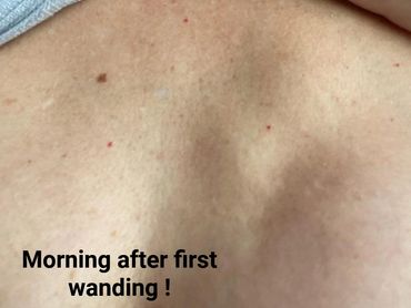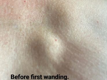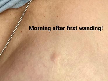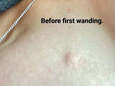 The following pictures are of a friend that has been fighting a life-threatening immune disorder for the last four years. There are only three pictures of each structure in her breas because after two weeks of treatment they are no longer visible to the eye. They are much smaller than when she first started wanding and are only detectable through palpation.